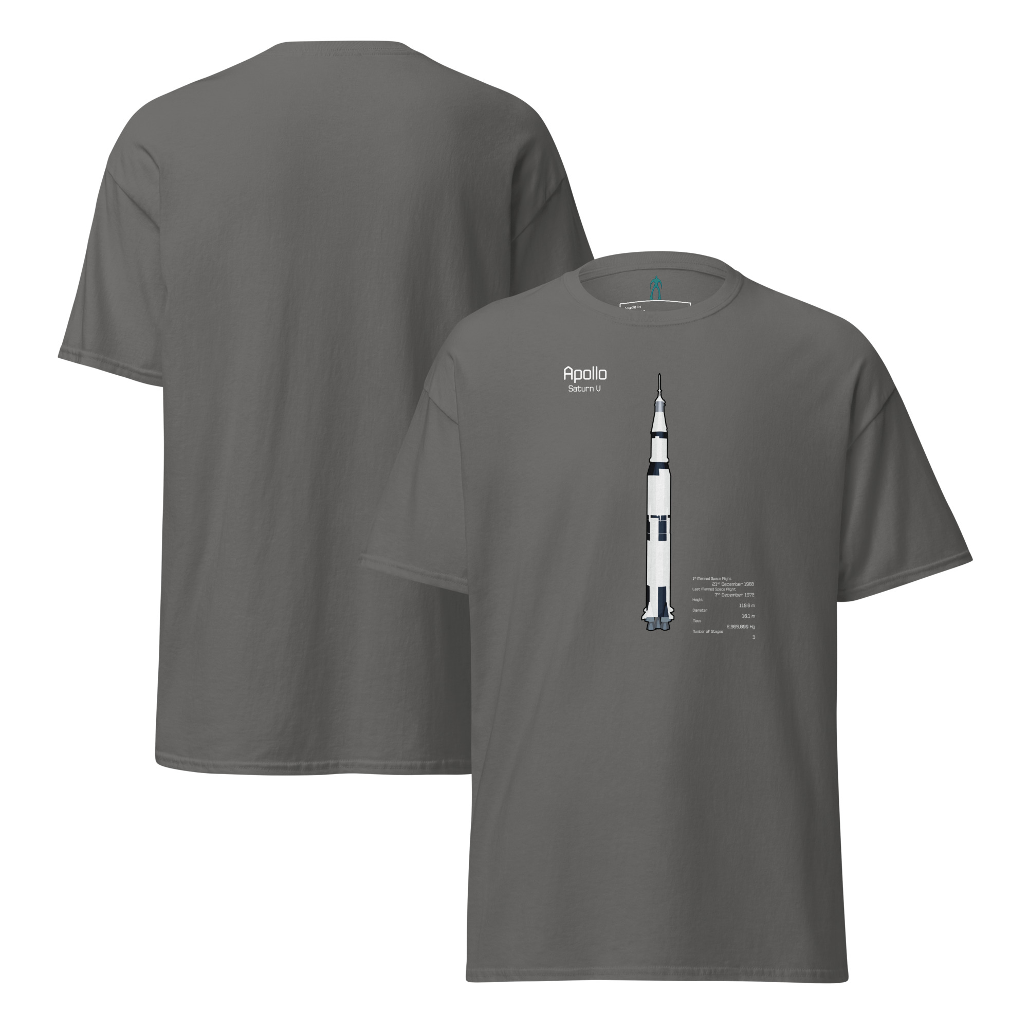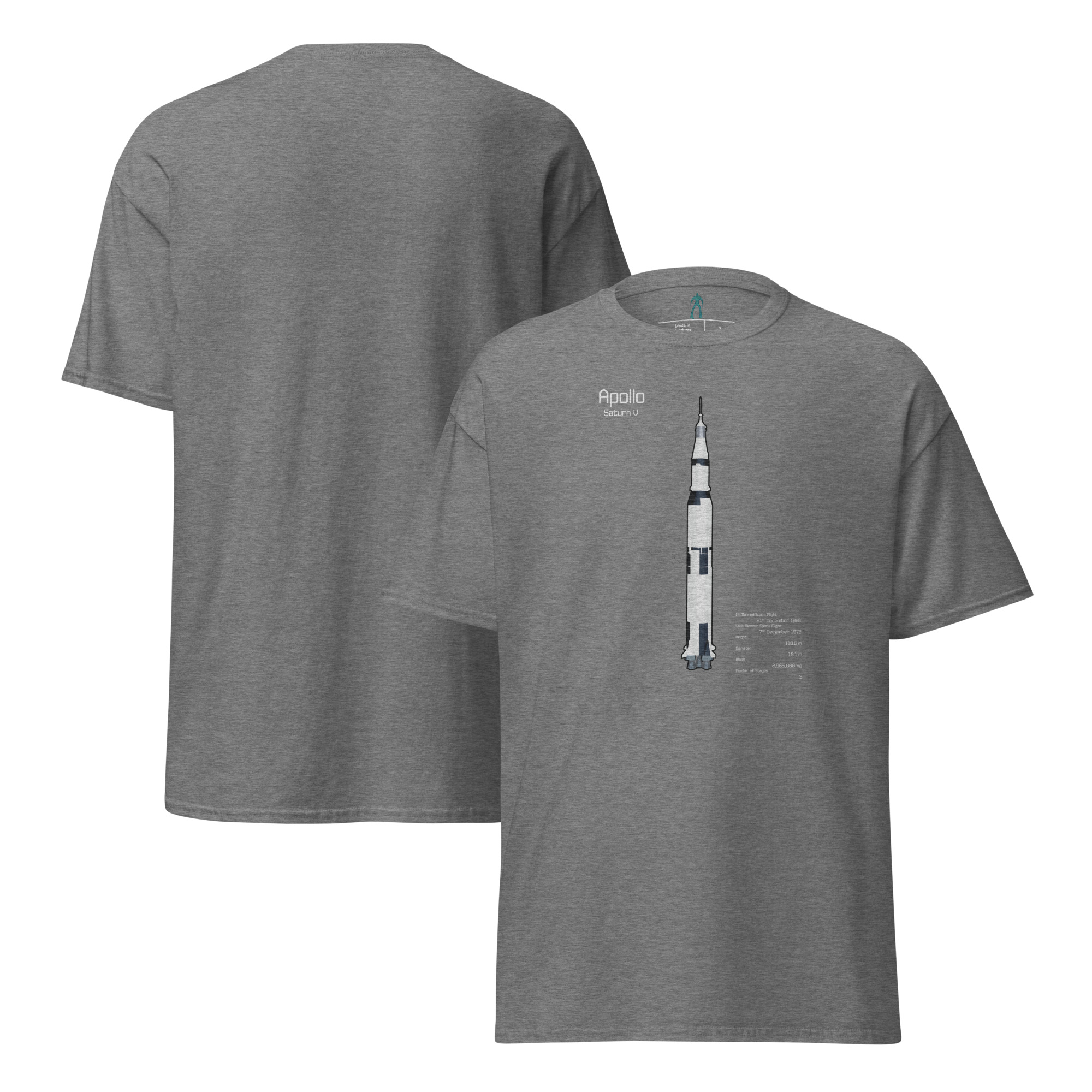 The Saturn V was the first, and so far only, rocket to launch humans to the moon. An icon of the space age, and still iconic now. You can celebrate the incredible feat of ingenuity and engineering with this T-Shirt